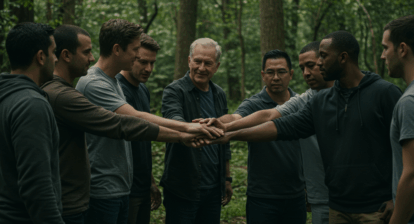 A imagem acima retrata uma cena profunda: um homem claramente abalado, cercado por pessoas que demonstram cuidado e empatia. Pode ser um pai, um filho, um irmão… Não importa o papel que ele desempenha na vida de cada um ali presente — naquele momento, ele é alguém precisando de apoio. E ele está sendo acolhido, não julgado.